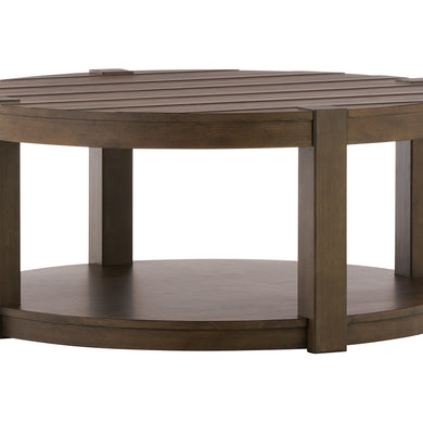 - Rustic birch veneers finished in a warm Cobblestone Brown for timeless appeal.