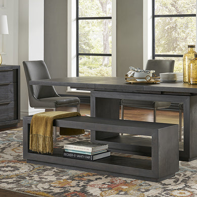 The Oxford Collection makes a striking first impression. The dining table has features bold proportions, crisp modern lines and a rich finish. Includes four upholstered dining chairs with a curved back for support and a bench for additional seating.