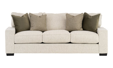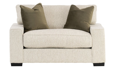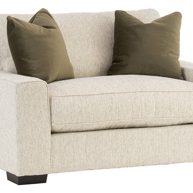 - Neutral upholstery and complementary block legs.
