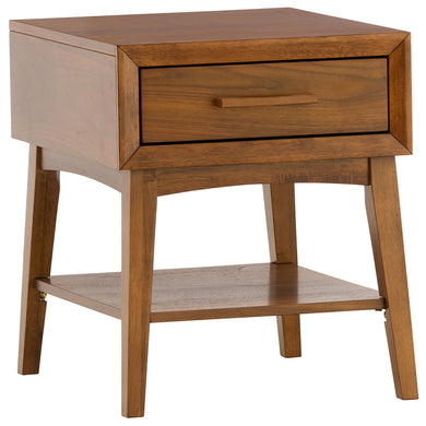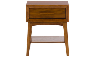 - One roomy drawer and open shelf offer versatile storage options.