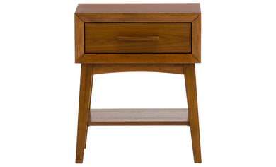 - One roomy drawer and open shelf offer versatile storage options.